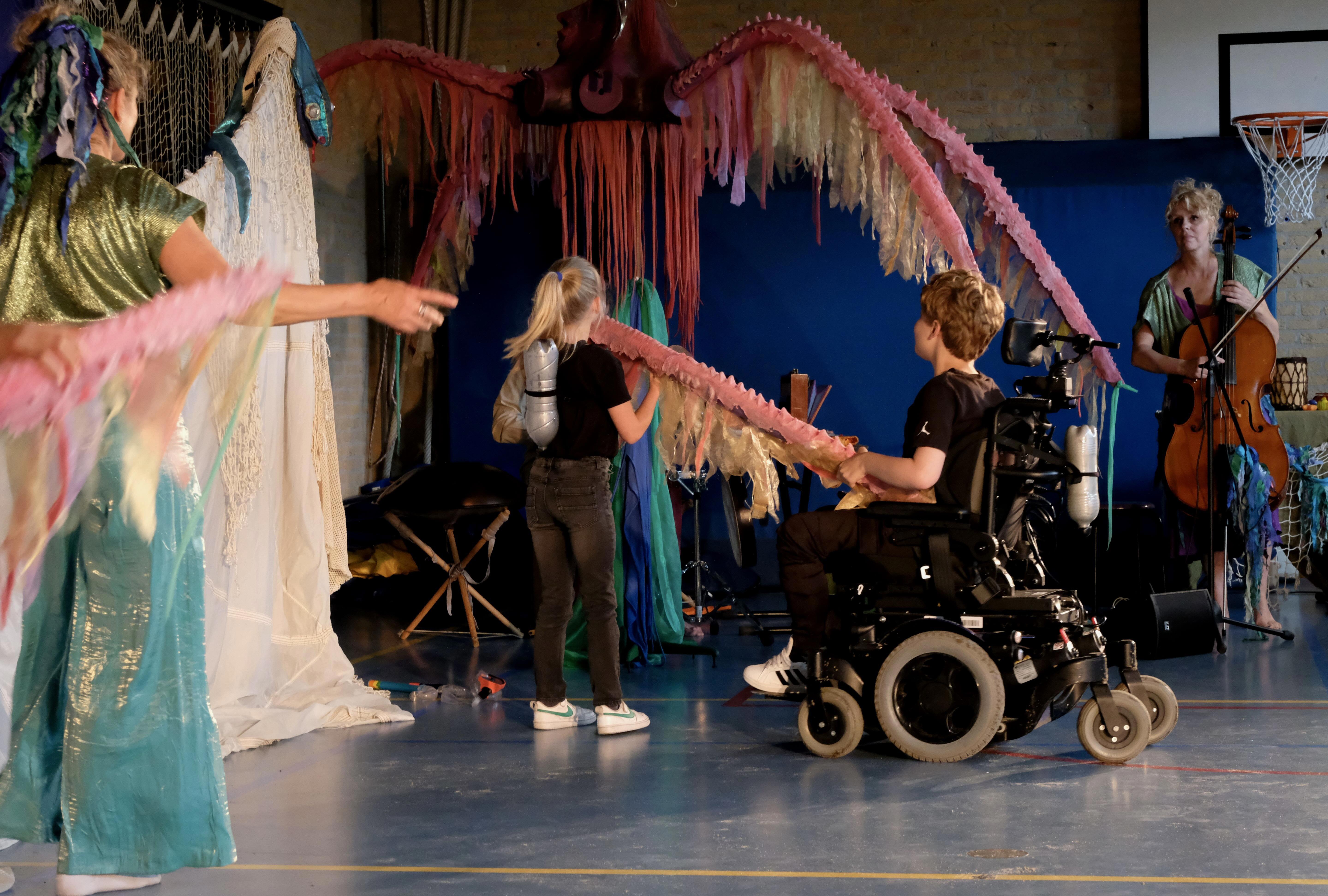 In voorbereidende workshops muziek en beweging werken de kinderen aan een korte scène. Alle kinderen krijgen een rol als zeedier: van muzikale krabbetjes en dansende vissen tot stoere duikers en een prachtig koraalorkest. En iedereen speelt mee in de tekstloze voorstelling. Met de artiesten beleven de kinderen een magische onderwaterwereld die zelf tot leven brengen, met hun eigen talenten en mogelijkheden!
