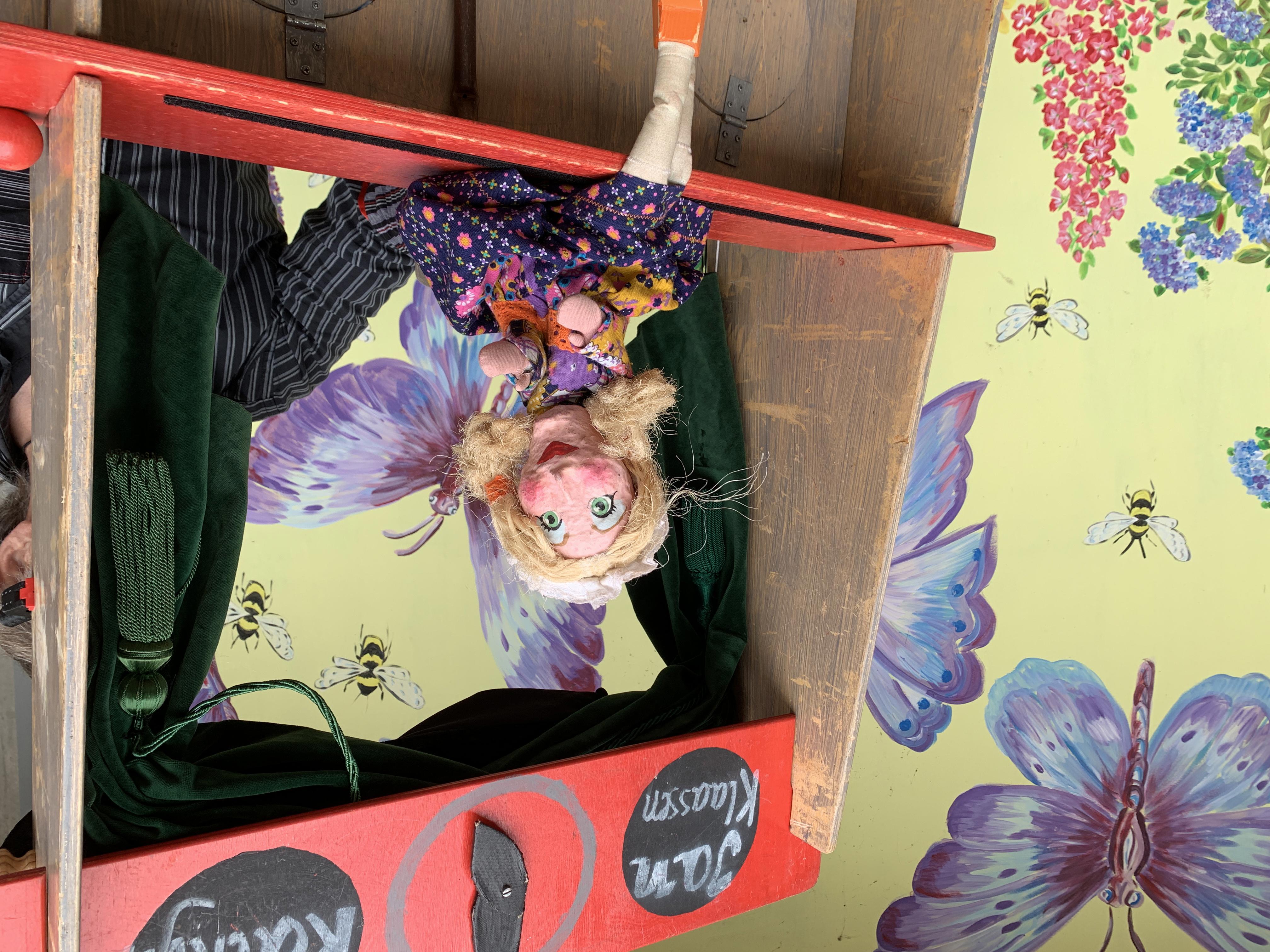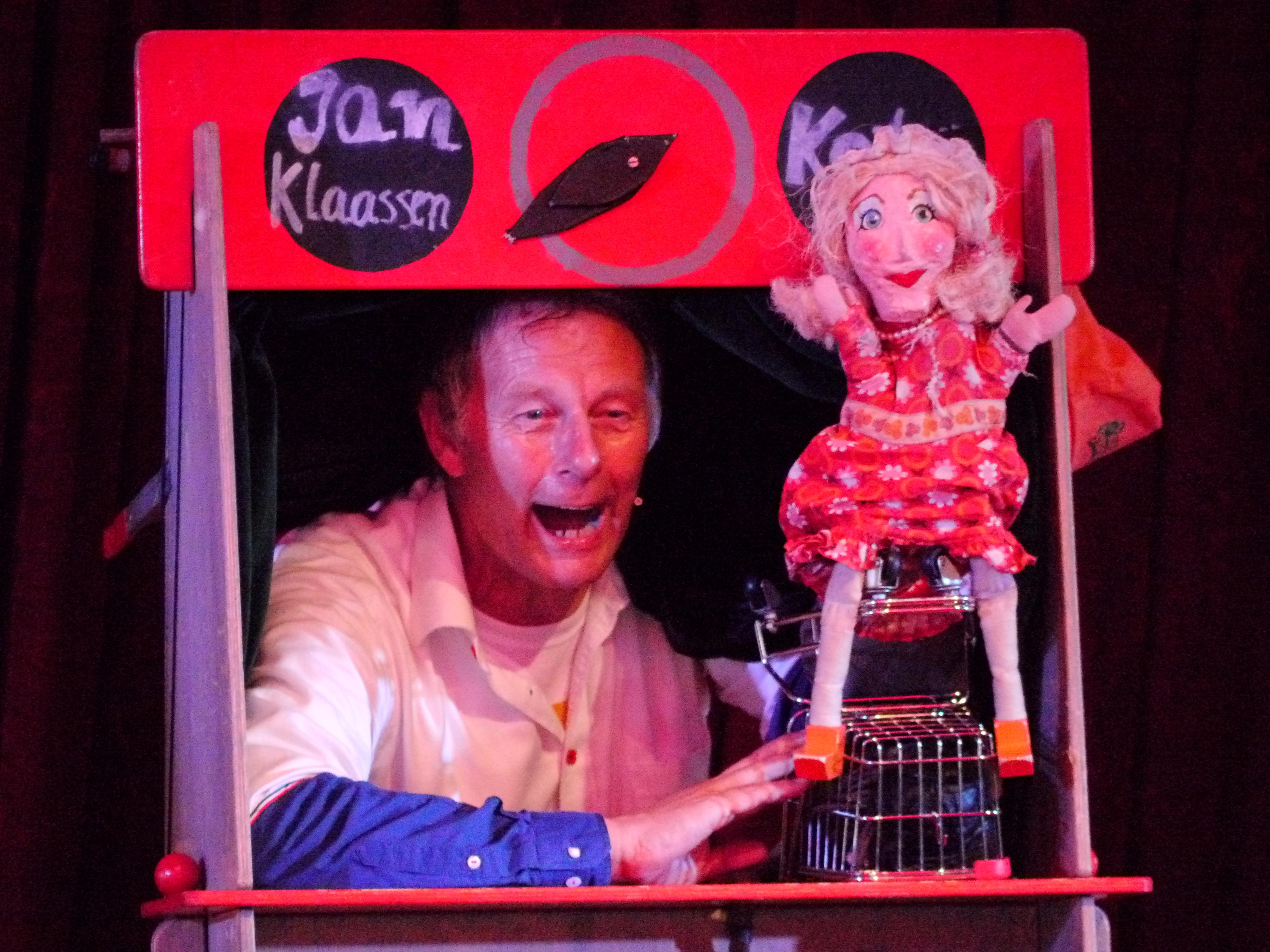 Traditionele handpoppenkast op een slagersfiets in een modern jasje met live accordeonmuziek. Zeer flexibel. Een voorstelling voor maximaal 3 groepen, 1e voorstelling € 400, 2e voorstelling € 300, 3e voorstelling € 250,- ex 9 % BTW, ex € 0,50 per km reiskosten vanaf Uithoorn(Schiphol)