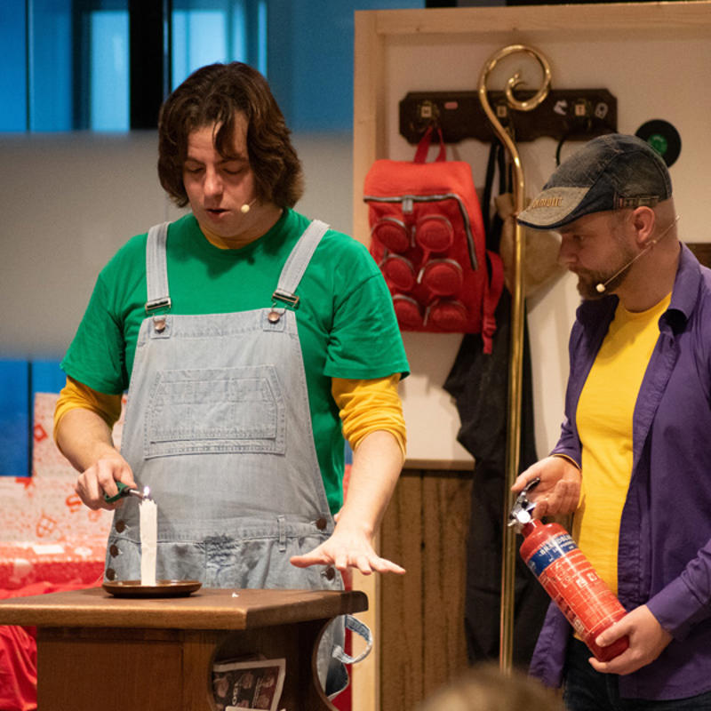 Max en Thomas pakken uit met Sinterklaas is een gezellige voorstelling voor jong en oud. leerzame momenten en komische situaties wisselen elkaar in rap tempo af. Zowel ouders als kinderen worden actief betrokken bij dit interactieve verhaal.