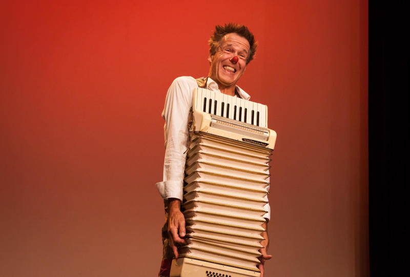 Niet alles verklappen nu, maar wel nog dit: zo leuk kan theater zijn met een tomaatje op je neus. Je zou daarom Arno zomaar clown kunnen noemen.