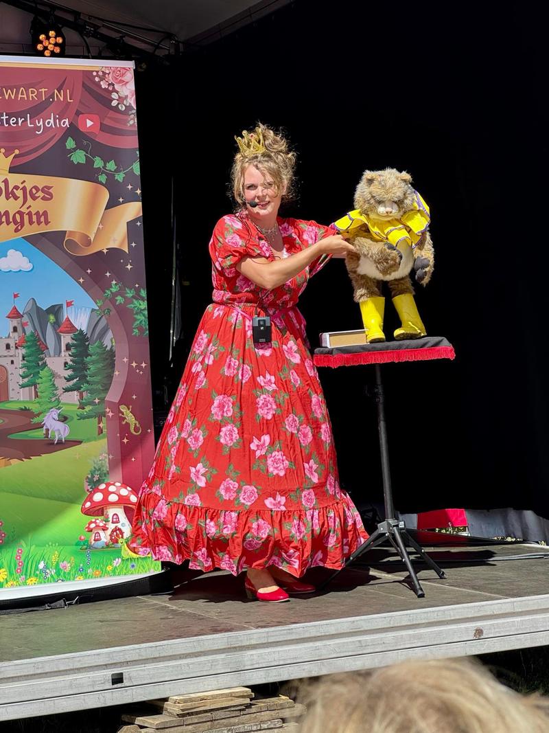 Buikspreekster Lydia Zwart komt als echte sprookjeskoningin op bezoek om haar publiek kennis te laten maken met verschillende pratende sprookjesfiguren.