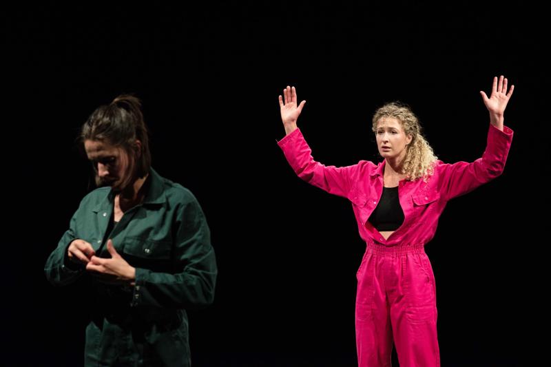 Twee mensen in een afgezet kader tasten elkaars aanwezigheid en de ruimte af. Met gedetailleerde bewegingen leren ze elkaars standpunt kennen. Toenadering en weerstand wisselen elkaar af. Wat eerst speels en onschuldig oogt leidt tot steeds meer frictie en ruwheid. Er wordt gegooid, getrokken en gehangen. De dansers zuigen je mee in een turbulente relatie waarin het belang van de ruimte tot intense spanningen leidt.