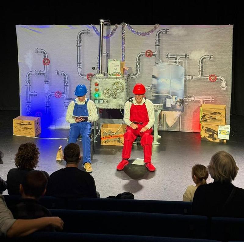 Het is een interactieve en komische kindervoorstelling met geluidseffecten en een uitgebreid decor. Alsof je echt naar het theater gaat met de leerlingen, maar dan op school!