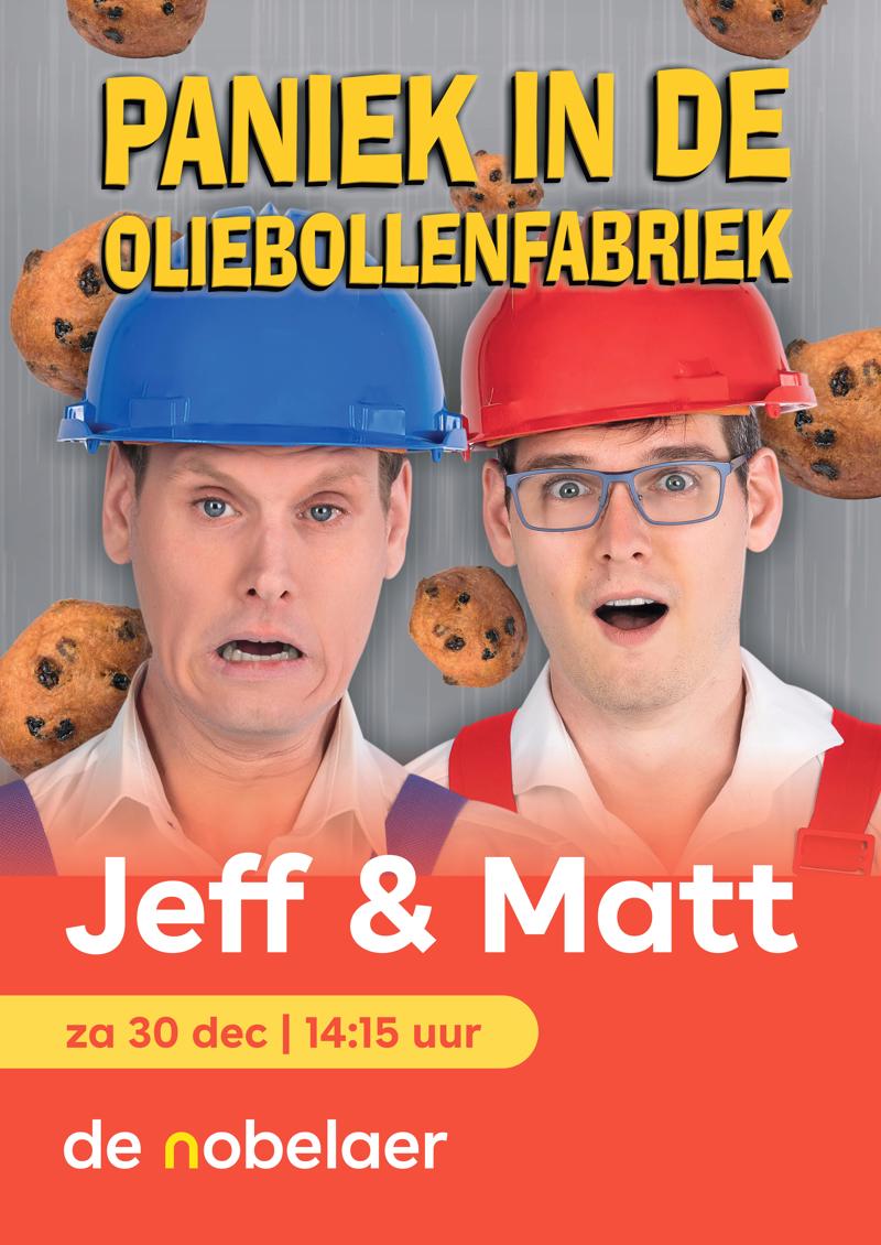 Jeff & Matt werken in de snoepfabriek en moeten een bestelling van 1000 snoepjes maken, maar wanneer de machine oververhit raakt en stilvalt, proberen ze samen met de kinderen alles te repareren. Deze interactieve voorstelling kan aangepast worden aan feestdagen zoals Pasen, Koningsdag, Sinterklaas, Kerst en Oud & Nieuw, en sluit ook aan bij een techniekweek.