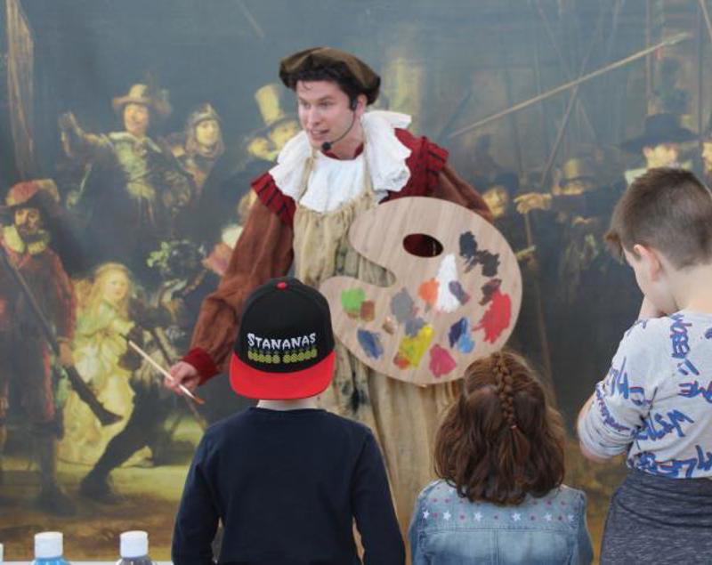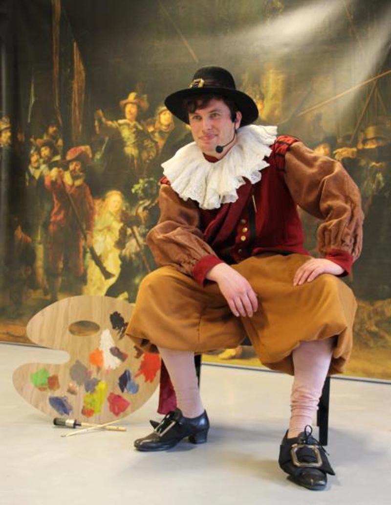 Acteur Maarten Kat speelt, vertelt en zingt over het leven van Rembrandt van Rijn. Tijdens deze doldwaze kindervoorstelling van 45 minuten maken kinderen kennis met één van de beroemdste Hollandse meesters uit de zeventiende eeuw. Producent van de voorstelling is Bart Bosch. Bart presenteerde o.a. jarenlang het programma Nieuws Uit De Natuur voor schooltelevisie en produceerde eerder kindervoorstellingen voor o.a. het WNF (Rangerclub), de dierenbescherming (Kids For Animals) en Look o Look (professor Snoep) Een leerzame en gezellige kindershow voor Scholen, theater en evenementen. Het decor bestaat uit een levensgrote 'Nachtwacht'.