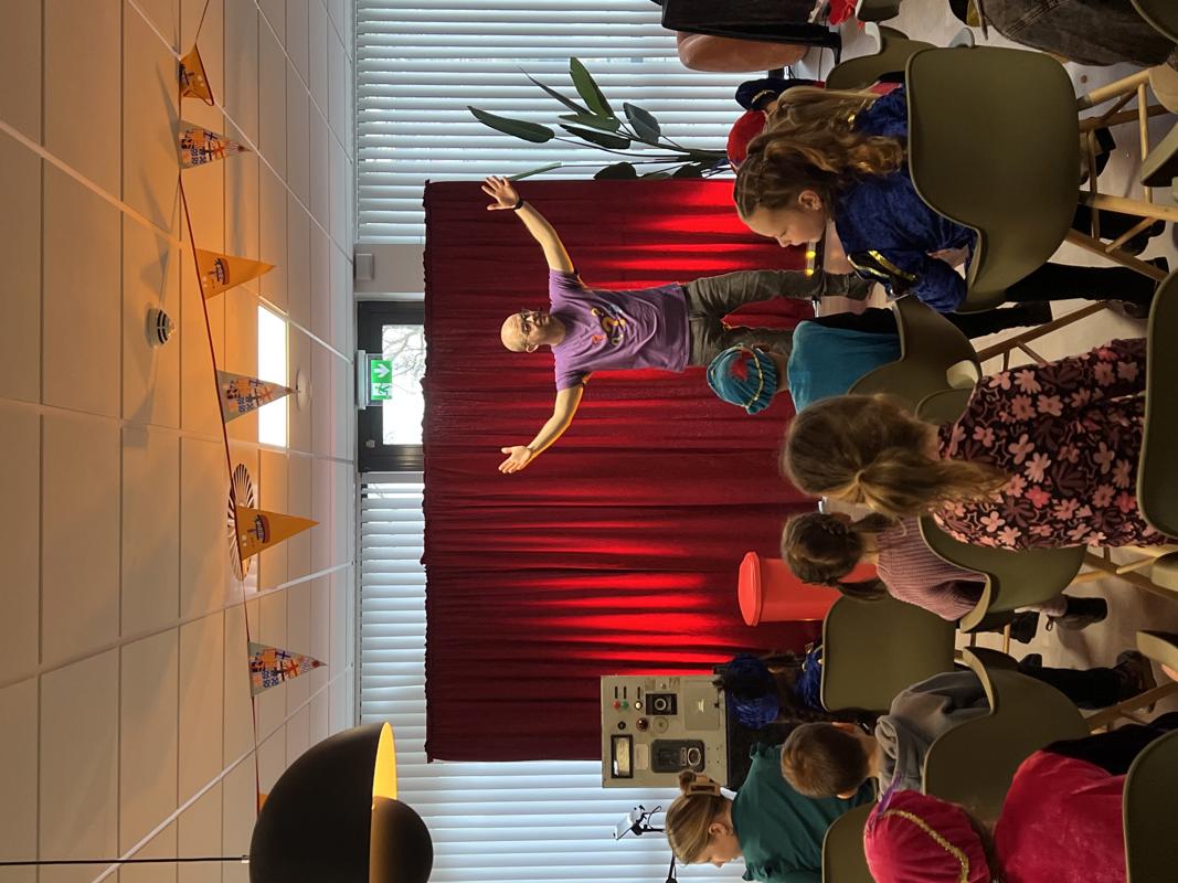De voorstelling is geschikt voor basisscholen, bedrijven en evenementen en past zowel bij kleine groepen als grote zalen.