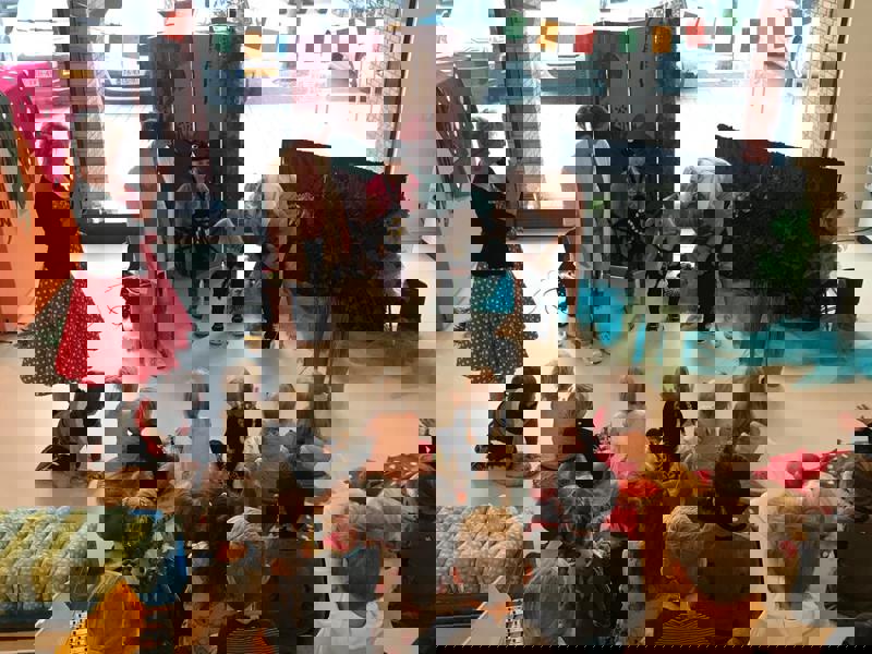 Ze brengt ook instrumentjes mee, dus kan iedereen gezellig meedoen!