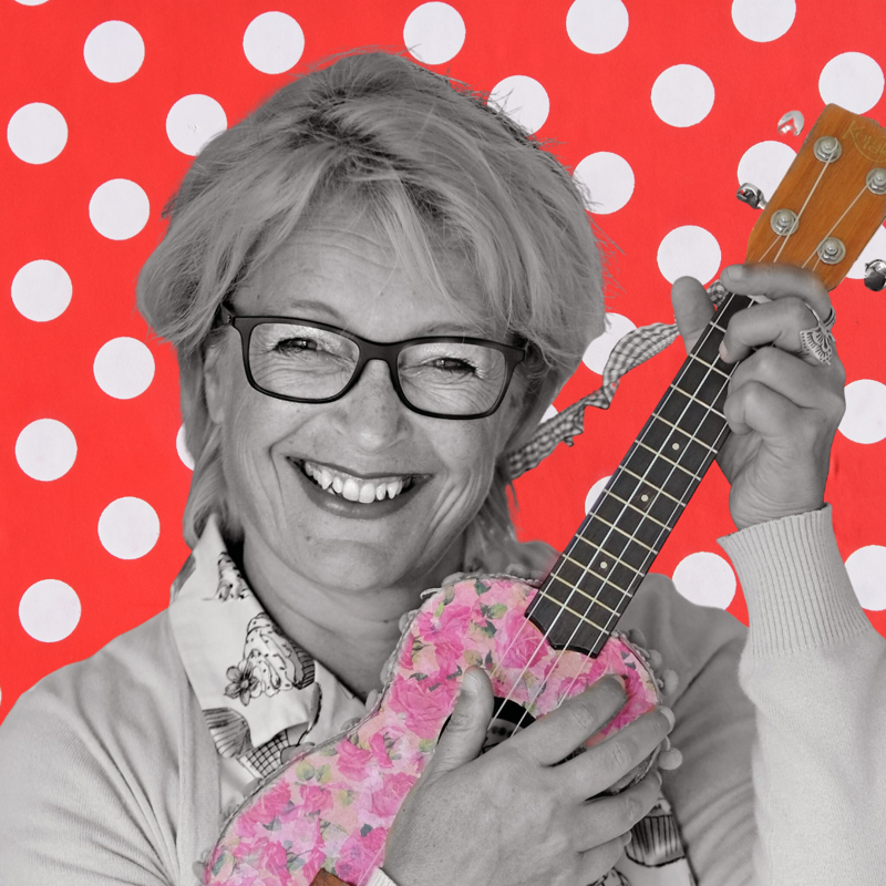 Tante Thee speelt als geen ander in op haar publiek, groot of klein, maakt grapjes en zingt bekende en (nog) onbekende liedjes met gitaar en ukelele.