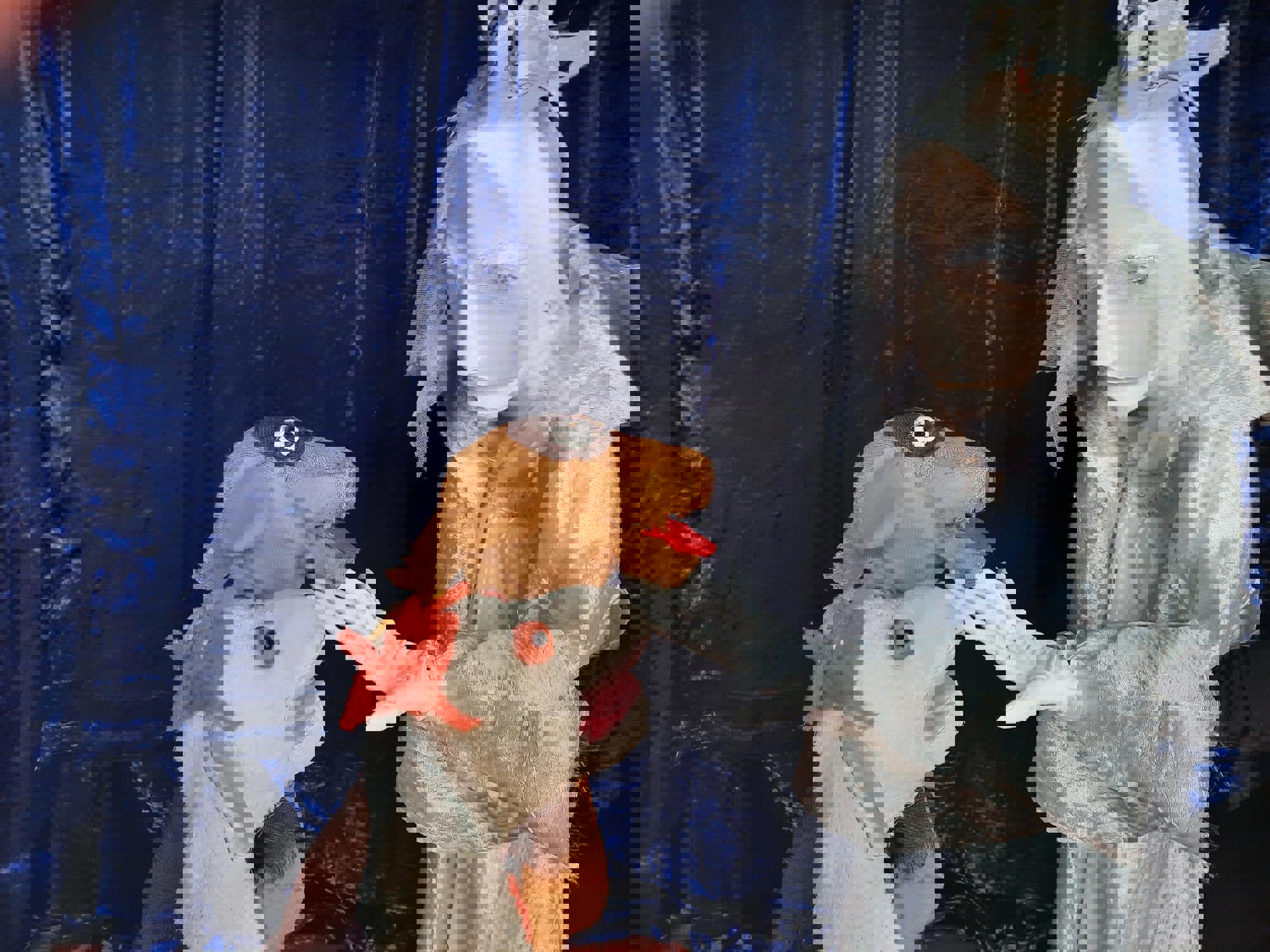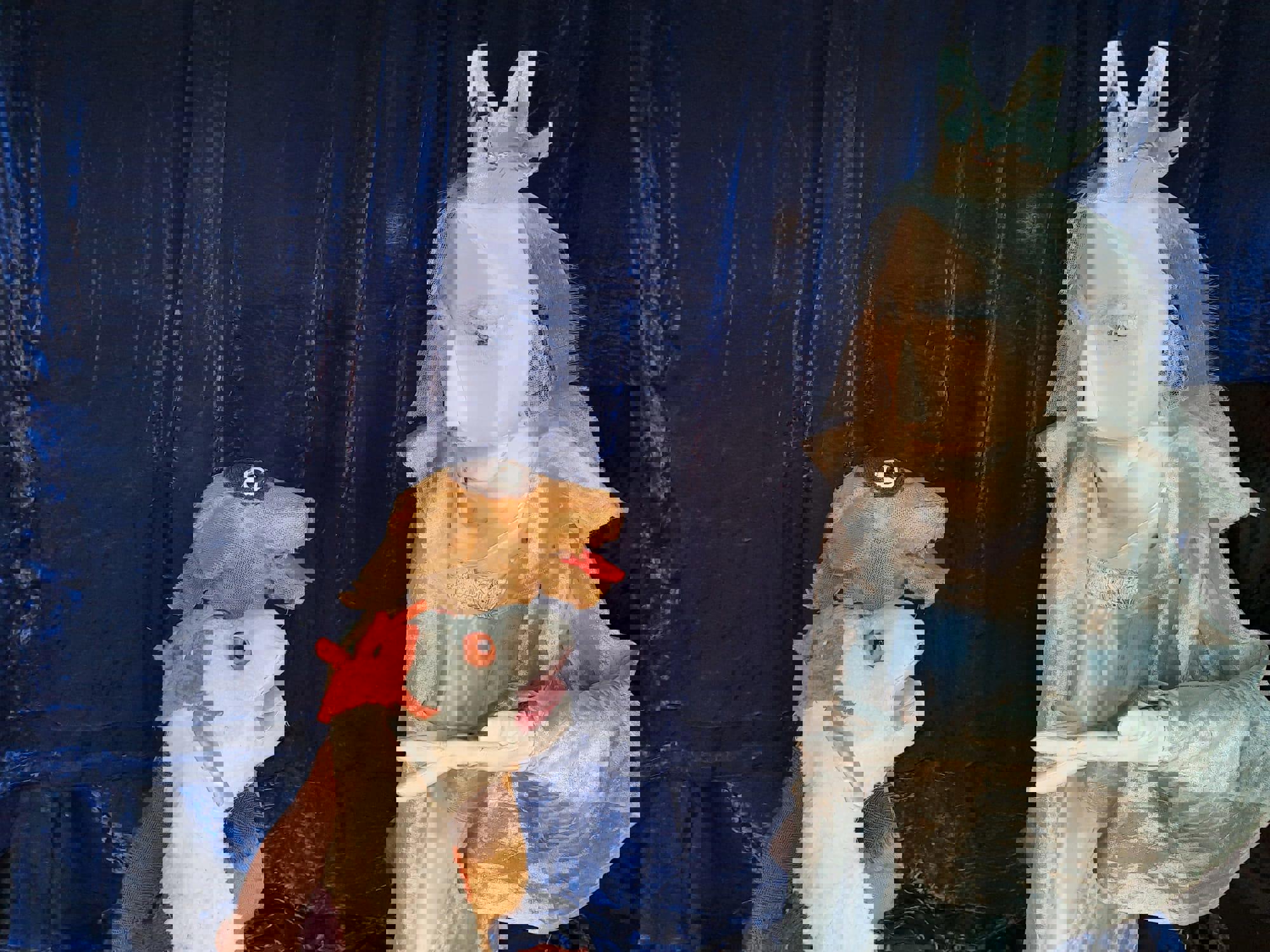 -Grote zelfgemaakte poppen, waarmee we vrij door de ruimte bewegen