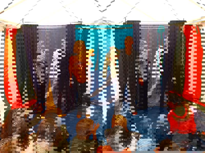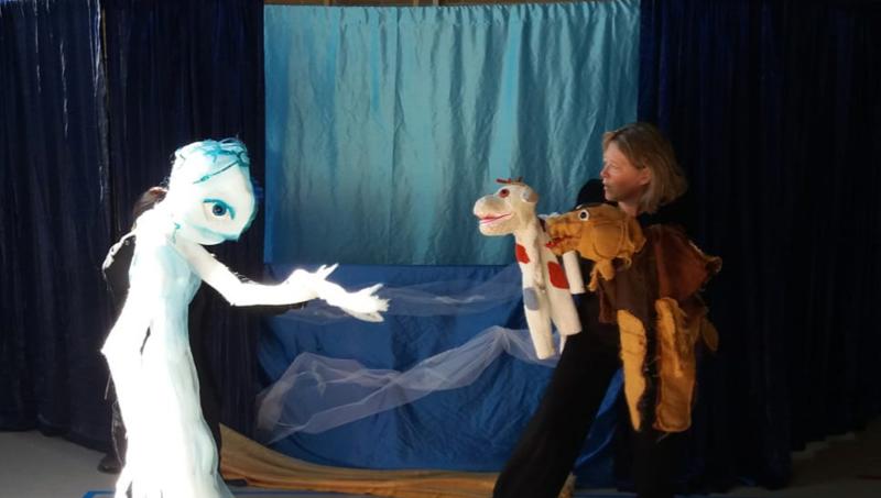 Theater Compagnie Alice maakt voorstellingen met grote poppen en muziek over natuur en milieu.