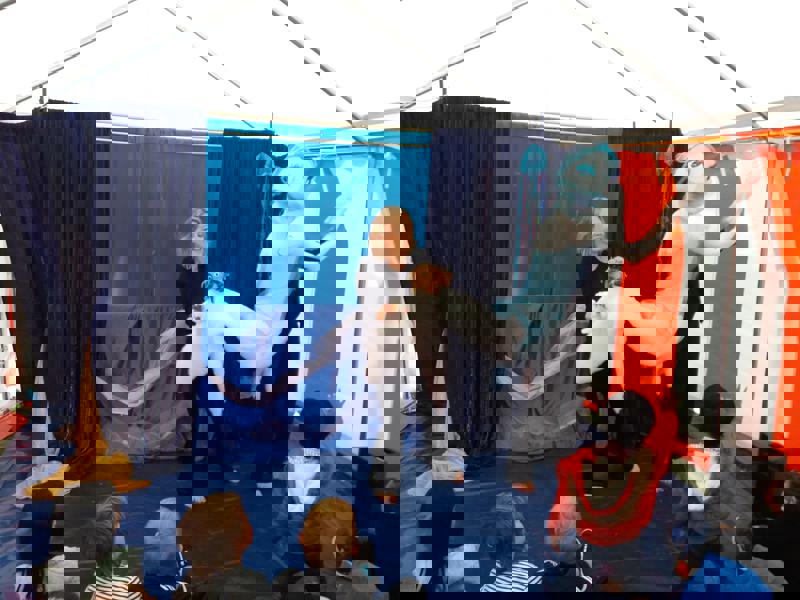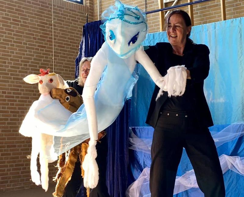 Theater Compagnie Alice maakt voorstellingen met grote poppen en muziek over natuur en milieu.