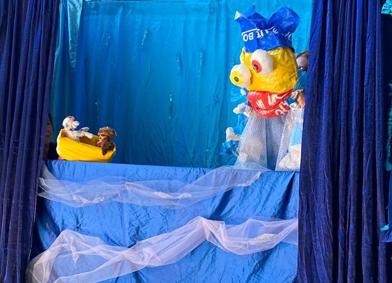 Met grote levensgrote poppen spelen we een spannend verhaal over een plasticmonster in de zee met mooie onderwatertaferelen en muziek.