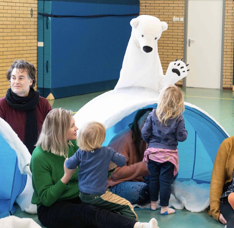 Opstelling publiek: De kinderen zitten in de iglo's. Volwassenen kunnen erbij gaan zitten of in een cirkel er omheen zitten.