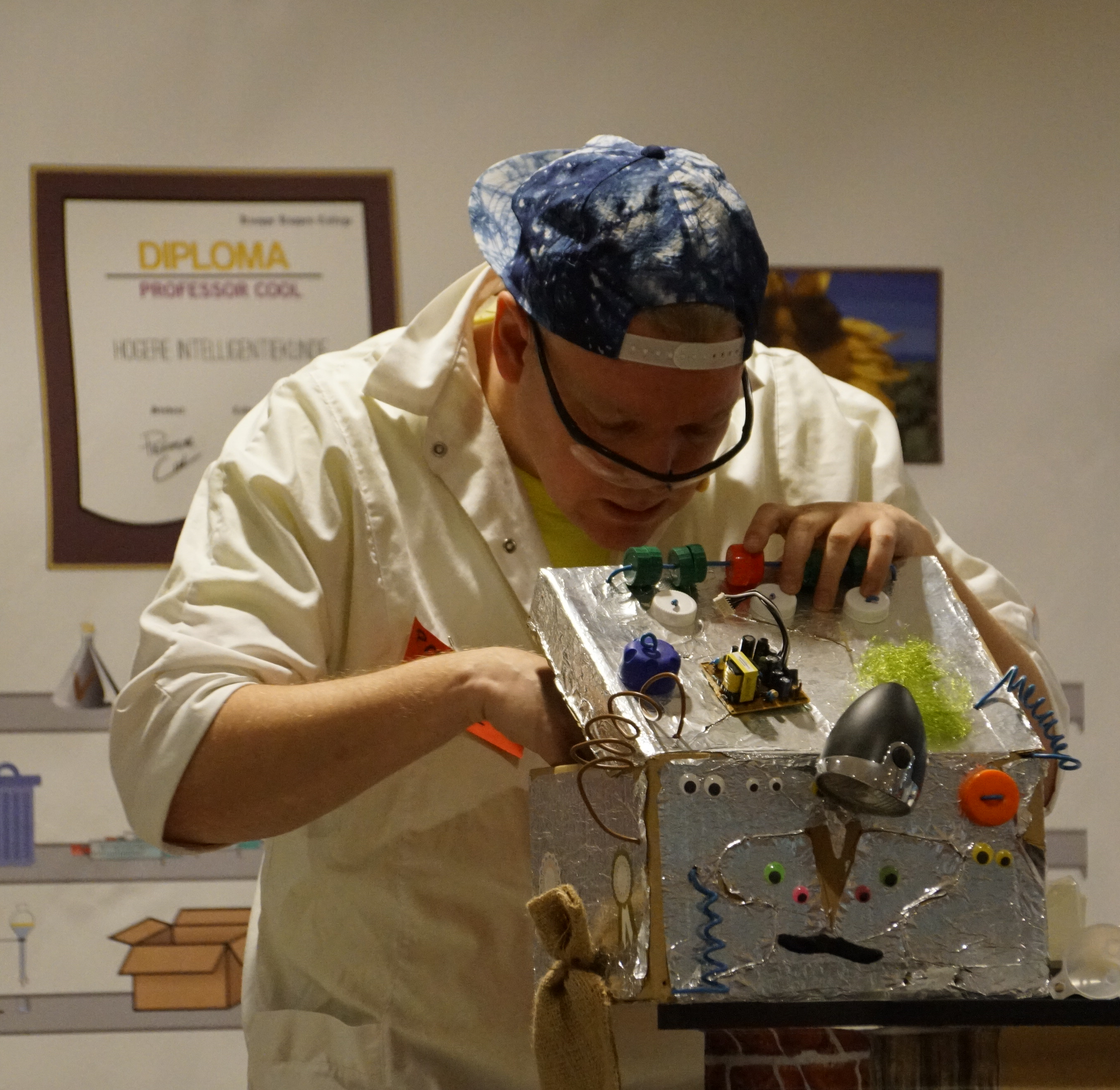 Welkom in het laboratorium van professor Cool! Professor Cool wil graag dat de kinderen hem een slimme professor gaan vinden en demonstreert zijn nieuwste uitvindingen. Maar die werken allemaal niet helemaal zoals bedoeld…