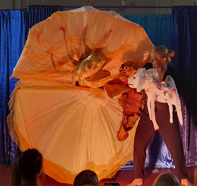 Met grote levensgrote poppen spelen we een spannend verhaal over een plasticmonster in de zee met mooie onderwatertaferelen en muziek.